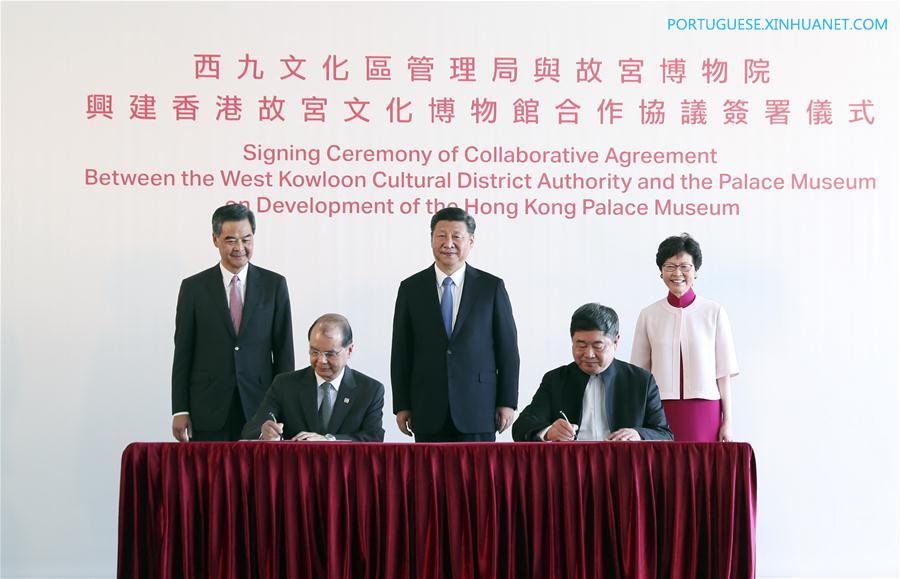 Hong Kong, 30 jun (Xinhua) -- O presidente chinês, Xi Jinping, participou na tarde de quinta-feira da cerim?nia de asinatura do acordo de coopera??o sobre o desenvolvimento do Museu do Palácio de Hong…