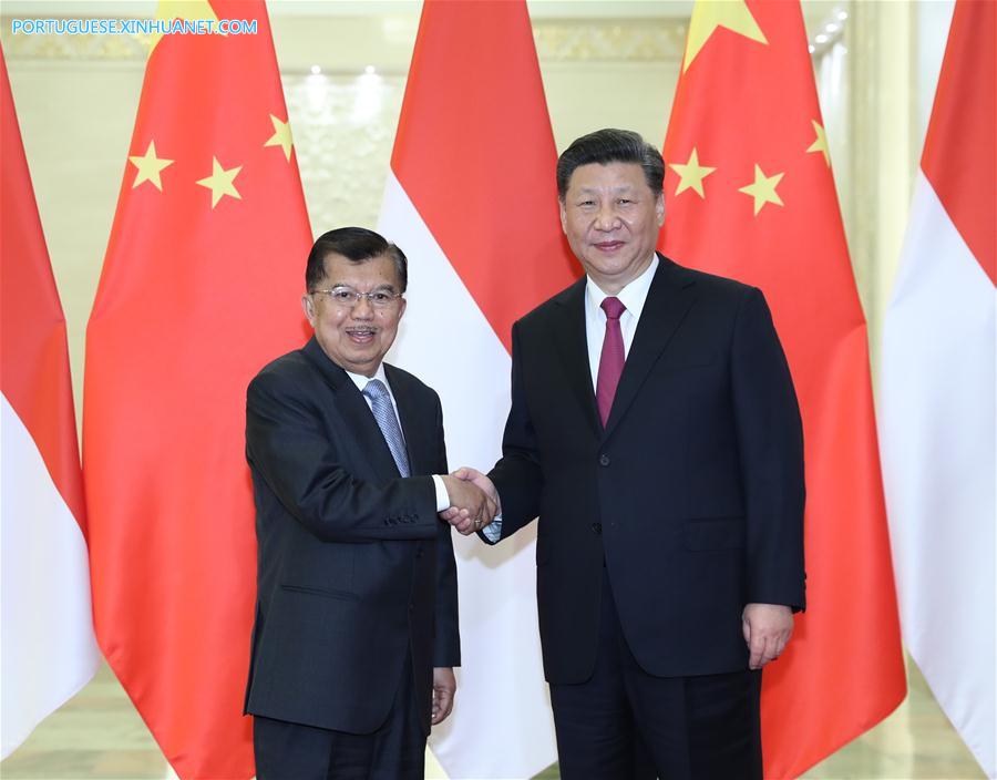O presidente chinês, Xi Jinping, reuniu-se na quinta-feira com o vice-presidente indonésio, Jusuf Kalla, que se encontra em Beijing para assistir ao Segundo Fórum do Cintur?o e Rota para Coopera??o Internacional.
