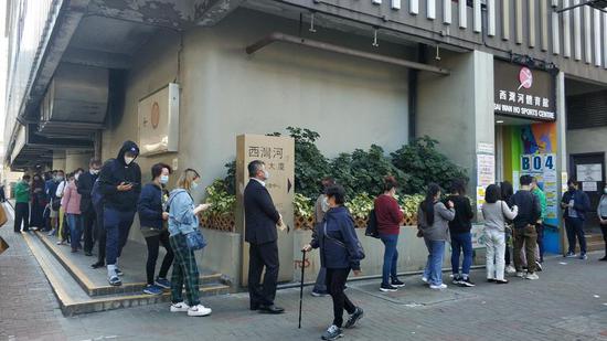 Moradores fazem fila para tomar a vacina da Covid-19 no Centro Esportivo Sai Wan Ho em Sai Wan Ho, Hong Kong, em 4 de janeiro de 2022. (Foto: China Daily) A Chefe do Executivo da Regi?o Administrati…