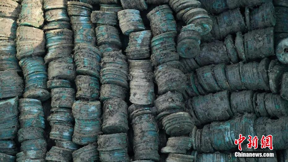Um lote das moedas recém-descobertas na vila de Shuangdun, província de Jiangsu, leste da China, foi desenterrado, segundo a notícia da ter?a-feira (29). Cerca de 1,5 toneladas de moedas foram encontradas, a maioria das quais das dinastias Tang (618-907) e Song (960-1279).