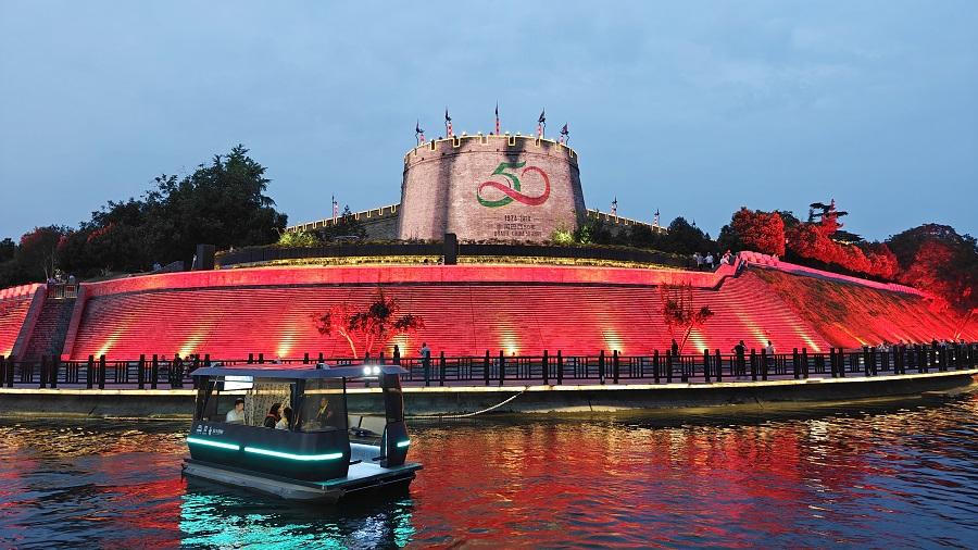 As cidades chinesas de Beijing, Tianjin, Chongqing, Shandong e as cidades brasileiras de Brasília (Distrito Federal), Amazonas, Bahia, Rio de Janeiro, S?o Paulo e outras cidades irm?s China-Brasil (províncias e estados) realizaram na noite de quinta-feira (15) um show de luzes nos seus respectivos edifícios emblemáticos para comemorar o 50o aniversário do estabelecimento das rela??es diplomáticas entre a China e o Brasil. A China e o Brasil s?o os maiores países em desenvolvimento e importantes países de mercado emergente nos Hemisférios Oriental e Ocidental, respetivamente.
