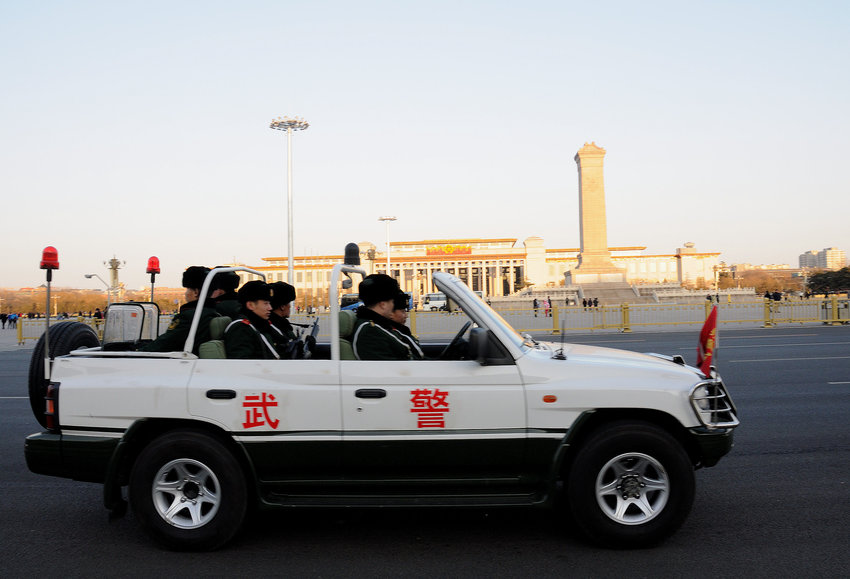 BEIJING, 28 de fev (Diário do Povo Online) - A polícia chinesa come?ou no dia 26 a fazer patrulha na Pra?a de Tiananmen (Paz Celestial) para garantir a seguran?a das sess?es anuais da APN e CCPPCh de 2015.