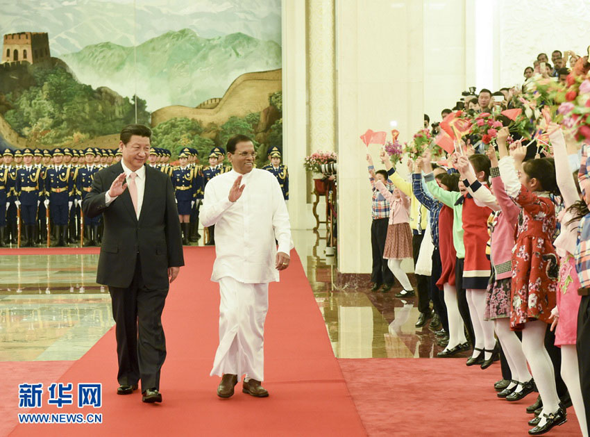 BEIJING, 27 de mar (Diário do Povo Online) – O presidente chinês, Xi Jinping, reuniu-se ontem (26) no Grande Palácio do Povo com o seu homólogo do Sri Lanka, Maithripala Sirisena, que está na China para uma visita oficial e para a participa??o da Reuni?o Anual 2015 do Fórum de Bo’ao para a ásia. Depois do encontro, os dois presidentes testemunharam a assinatura dos documentos cooperativos nas áreas como a infraestrutura e saúde.