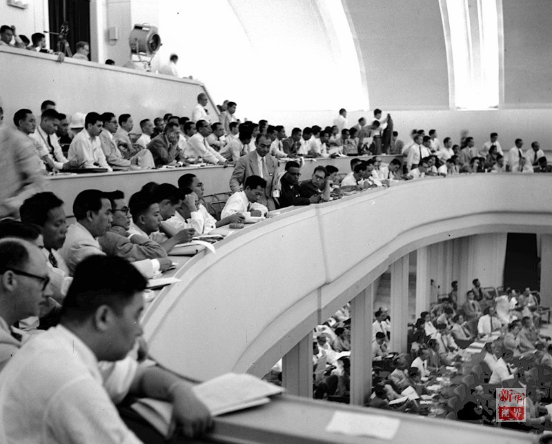 Os assentos para jornalistas na Conferência ásia-Africano.