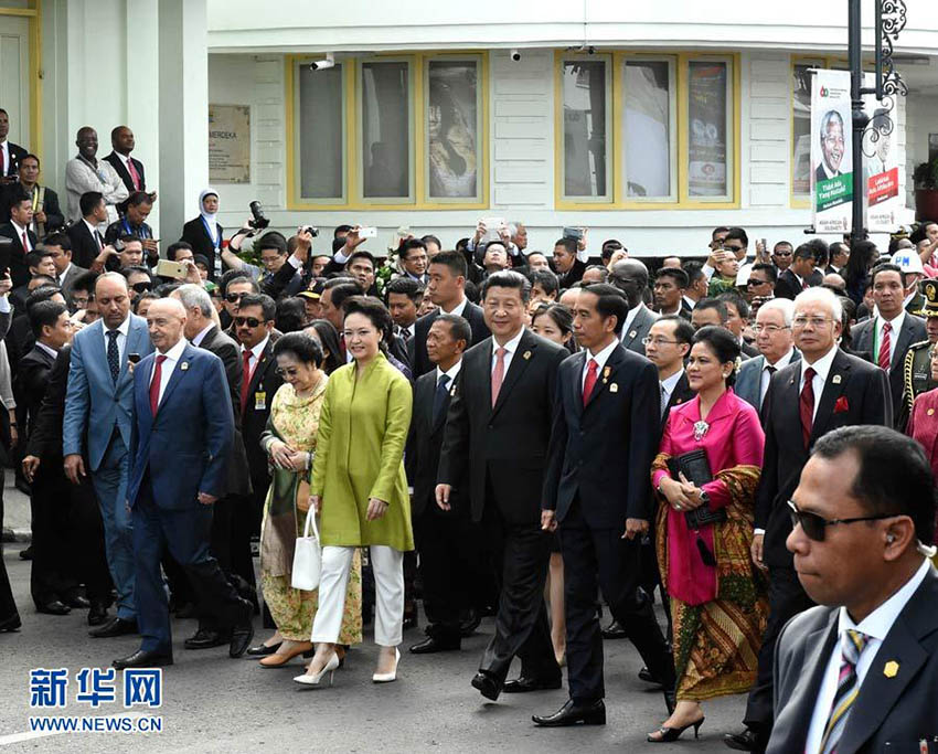 No mesmo dia, às 9h20m, os líderes dos países asiáticos e africanos foram, do Hotel Savol-Hohmann, ao Edifício de Independência, local antigo da Conferência de Bandung,. Há 60 anos atrás, os antigos líderes participaram do evento fazendo essa mesma rota. Hoje, aproveitando isso, eles valorizaram a história e divulgaram o espírito de Bandung, de uni?o, amizade e coopera??o.