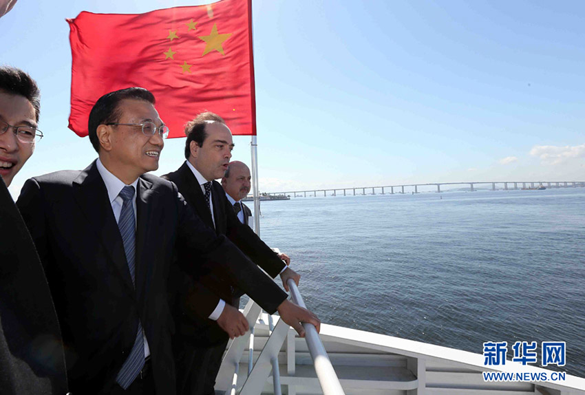 Na manh? do dia 20, horário local, o primeiro-ministro chinês, Li Keqiang, fez a travessia "P?o de A?úcar", em um barco produzido pela China, no Rio de Janeiro, para conversar com os representantes empresariais chineses e brasileiros. Li Keqiang pediu na ocasi?o que os brasileiros dêem mais importancia aos interesses legítimos e seguran?a das empresas chinesas, especialmente, as pequenas e médias, e dos residentes chineses no país.