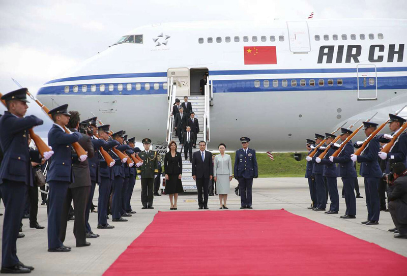 BOGOTá, 21 de maio (Diário do Povo Online) – O primeiro-ministro chinês, Li Keqiang, junto com sua esposa, Cheng Hong, chegou na tarde desta quinta-feira, horário local, a Bogotá, iniciando a visita oficial à Col?mbia. Foi a primeira viagem de um premiê chinês ao país latino-americano nos últimos 30 anos.