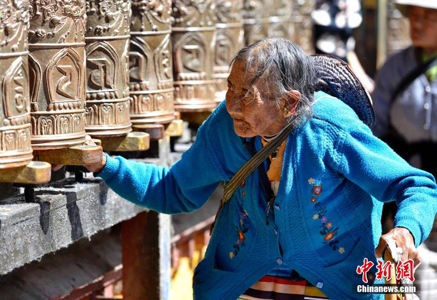 LHASA, 3 de jun (Diário do Povo Online) - Segundo a tradi??o tibetana, o quarto mês do canlendário tibetano é a festa de Sagadawa. Na ter?a-feira (2), ou seja, dia 15 de abril do canlendário tibetano, as celebra??es da Festa de Sadagawa chegaram ao apogeu. Numerosos crentes fizeram “zhuanjing”, um tipo de peregrina??es nas três ruas principais de Lhasa, e o Templo de Jokhang e Rua Barkhor também estavam cheios de pessoas.