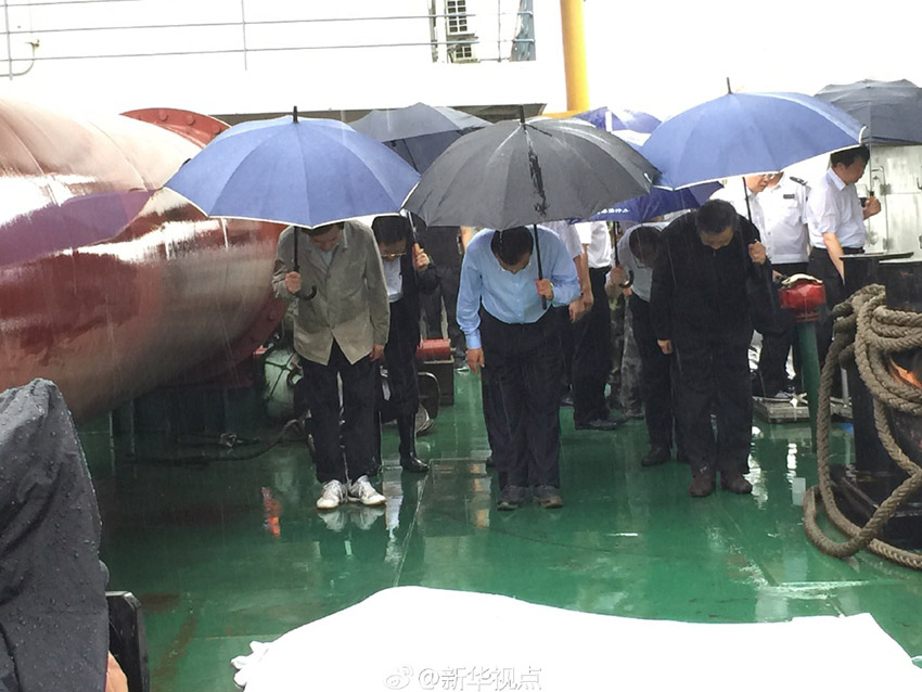 WUHAN, Hubei, 3 de jun (Diário do Povo Online) - Na manh? desta quarta-feira, o premiê chinês Li Keqiang chegou novamente ao local onde o navio “Estrela do Oriente” afundou no rio Yangtzé, em meio a chuvas fortes, fazendo silêncio aos restos das vítimas, em conjunto com sua comitiva.