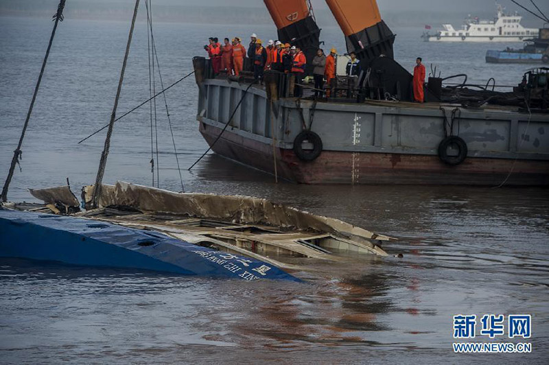 JIANLI, Hubei, 5 de junho (Diário do Povo Online) - O navio “Estrela Oriental” que afundou na segunda-feira no Rio Yangtzé come?ou hoje (5) a ser revertido e retirado de água, e os resgatadores continuaram buscando sobreviventes possíveis. Por volta das 8h30 de hoje, durante o processo da revers?o do navio, algumas partes do navio já estavam fora de água.