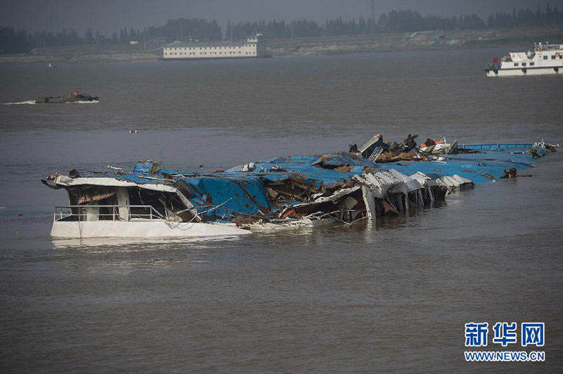 JIANLI, Hubei, 5 de junho (Diário do Povo Online) - O navio “Estrela Oriental” que afundou na segunda-feira no Rio Yangtzé come?ou hoje (5) a ser revertido e retirado de água, e os resgatadores continuaram buscando sobreviventes possíveis. Por volta das 8h30 de hoje, durante o processo da revers?o do navio, algumas partes do navio já estavam fora de água.