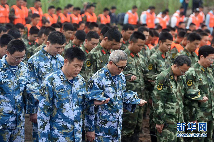 às 9h, o ministro do Transporte da China, Yang Chuantang, declarou a abertura da cerim?nia. Toda equipe de resgate parou o trabalho, tirou os chapéus e virou a cabe?a em dire??o ao Estrela do Oriente, junto com os familiares das vítimas e jornalistas. Enquanto isso, todas embarca??es ligaram os apitos por 3 minutos, incluindo os barcos que estavam passando pelo local que desaceleraram e ligaram seus apitos.