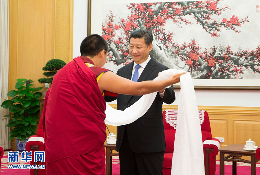 O Panchen Lama ofereceu Hada para o presidente chinês, e apresentou ao líder chinês seus estudos e trabalhos realizados nos últimos 20 anos. Xi Jinping parabenizou o Panchen Erdeni pelos seus progressos e apontou que o Comitê Central do Partido Comunista da China presta sempre alta aten??o aos trabalhos no Tibete. Ele lembrou que este ano é o 50o aniversário do estabelecimento da Regi?o Aut?noma do Tibete, e o governo central vai enviar representantes à regi?o para participar das atividades comemorativas.