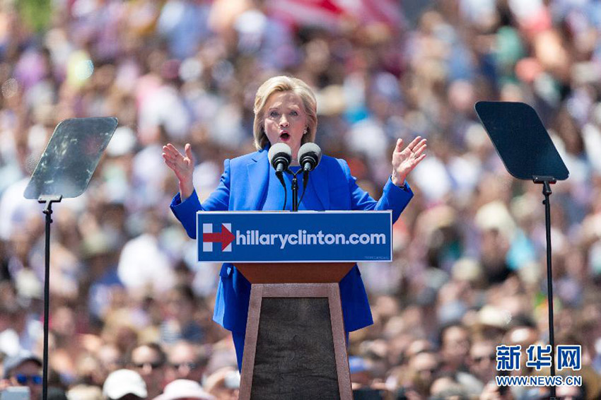 NOVA IORQUE, 15 de jun (Diário do Povo Online) - A ex-secretária de Estado dos EUA, Hillary Clinton, realizou no sábado passado (13), em Nova Iorque, seu primeiro rali da campanha presidencial, o que foi um avan?o importante para seu objetivo de ser a primeira presidente dos Estados Unidos. No entanto, alguns veículos de imprensa ocidental criticaram seu discurso por carecer de novas ideias e evitar temas controversos.