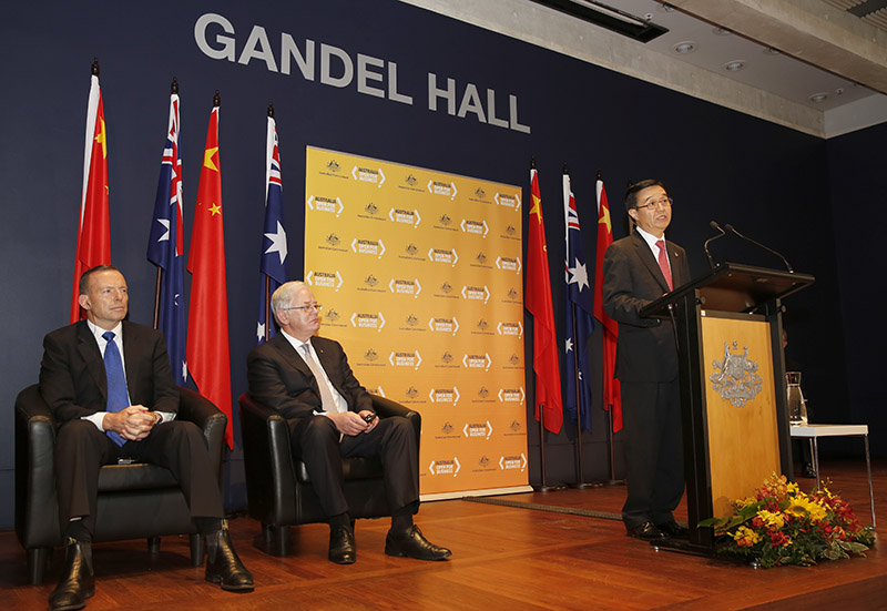 O Tratado de Livre Comércio entre a China e a Austrália referiu dezena de áreas, tais como mercadorias, servi?os, investimento e outras, alcan?ando a meta de ser "abrangente, bem qualificada e equilibrada em interesses". O documento foi um dos acordos em gênero com o maior nível de liberaliza??o assinados entre a China e outros países.