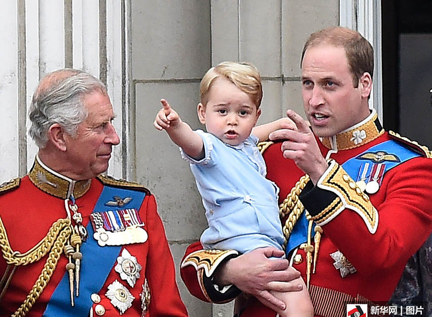 O Príncipe George está nos bra?os do seu pai, Príncipe William, na varanda do Palácio de Buckingham. (13 de junho, 2015)