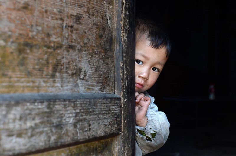 Abrindo uma porta velha, o repórter conseguiu ver a parte interna da casa, que é dividia em dois espa?os, à esquerda é um estábulo para bovinos com muito cheiro e à direita, é o quarto para pessoas. Sob a ilumina??o do celular, pode se ver uma cama, que é composta por uma tábua de madeira nos quatro tijolos. Sem mesa nem cadeira, a parede da casa foi defumada em preto. Isto é a casa de Er Ri Shu Jin, um residente da etnia Li que mora em uma vila pobre e remota da Província de Sichuan, no sudoeste da China.