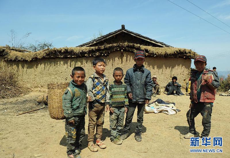 Abrindo uma porta velha, o repórter conseguiu ver a parte interna da casa, que é dividia em dois espa?os, à esquerda é um estábulo para bovinos com muito cheiro e à direita, é o quarto para pessoas. Sob a ilumina??o do celular, pode se ver uma cama, que é composta por uma tábua de madeira nos quatro tijolos. Sem mesa nem cadeira, a parede da casa foi defumada em preto. Isto é a casa de Er Ri Shu Jin, um residente da etnia Li que mora em uma vila pobre e remota da Província de Sichuan, no sudoeste da China.