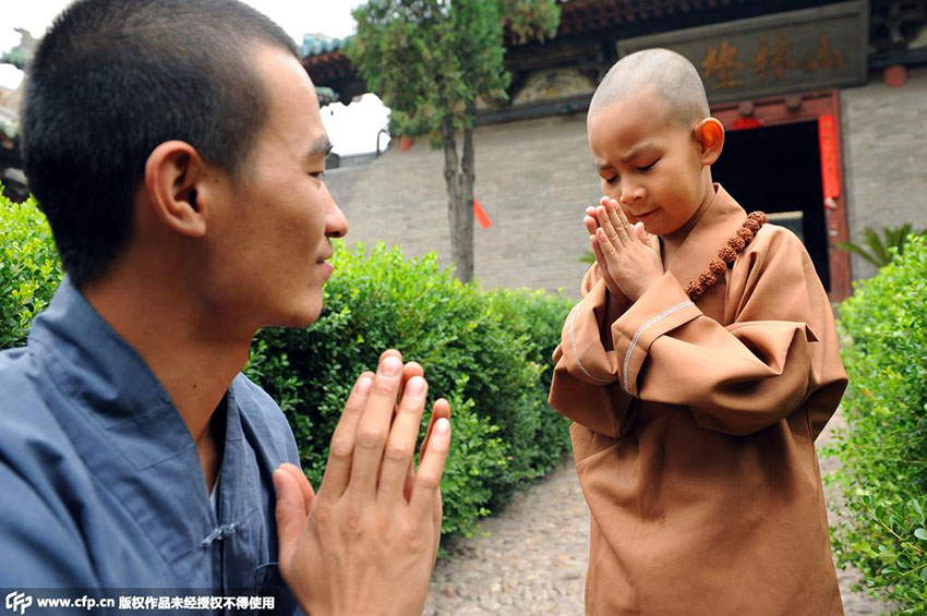 “Menino monge” de 4 anos passa férias de ver?o no templo em Shanxi (5)
