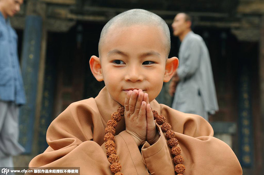 “Menino monge” de 4 anos passa férias de ver?o no templo em Shanxi (7)