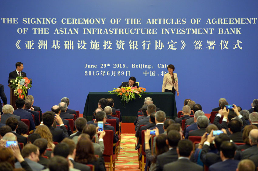 BEIJING, 29 de junho (Diário do Povo Online) – Os representantes dos 57 países membros fundadores do Banco Asiático de Investimento em Infraestrutura (BAII) assinaram nesta segunda-feira nesta capital o acordo da institui??o, que significa a “l(fā)ei básica” para o estabelecimento e a futura opera??o do banco. A assinatura deu um passo mais importante no caminho da sua constitui??o.