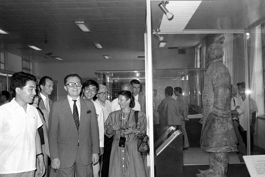 1. O ent?o presidente da Comunidade Econ?mica Europeia, Jacques Delors, visita o Museu de Terracotas do Imperador Qinshihuang em Xi’an, noroeste da China. (4 de julho, 1986)
