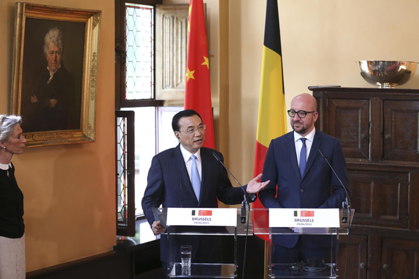 O premiê chinês, Li Keqiang, e o seu homólogo belga, Charles Michel, se econtraram na segunda-feira (29), após conversarem com jornalistas.