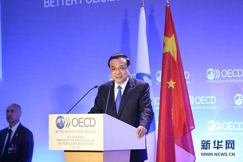 O primeiro-ministro chinês, Li Keqiang, realizou no dia primeiro de julho um discurso na sede da Organiza??o para a Coopera??o e Desenvolvimento Econ?mico (OCDE).
