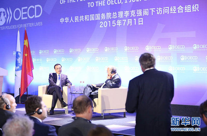 O primeiro-ministro chinês, Li Keqiang, realizou no dia primeiro de julho um discurso na sede da Organiza??o para a Coopera??o e Desenvolvimento Econ?mico (OCDE).