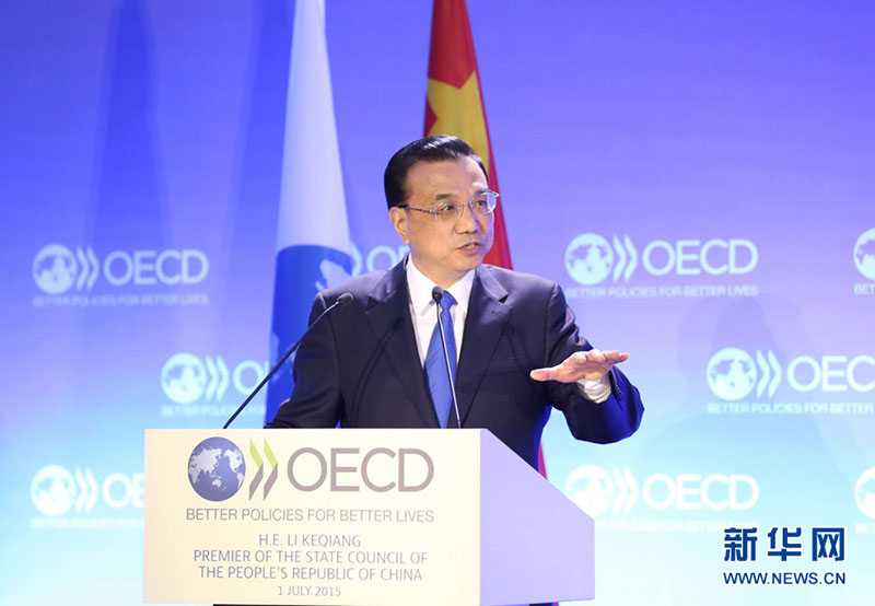 O primeiro-ministro chinês, Li Keqiang, realizou no dia primeiro de julho um discurso na sede da Organiza??o para a Coopera??o e Desenvolvimento Econ?mico (OCDE).