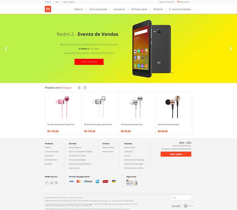 Os clientes podem fazer pedidos no site -- br.mi.com -- para comprar os produtos da Xiaomi incluindo smartphone "Redmi 2", o monitor de atividade "Mi Band", o carregador portátil "Mi Power Bank" e outros acessórios. Os produtos pedidos s?o entregues desde ter?a-feira, disse o vice-presidente Hugo Barra, da Xiaomi internacional, em S?o Paulo, a cidade mais populosa do Brasil.