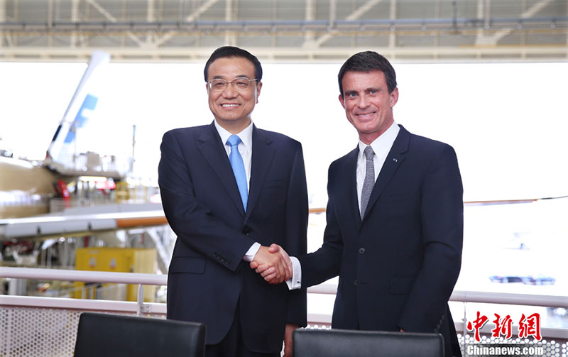 Depois, Li Keqiang e Valls testemunharam a assinatura de uma série de acordos de coopera??o entre a China e Fran?a, incluindo o acordo de Centro de Entrega de Airbus A-330 em Tianjin. Trata-se do primeiro projeto cooperativo de avi?o com fuselagem larga lan?ado pela Airbus fora do território europeu. Li Keqiang indicou que a China e a Fran?a têm que continuar promovendo o espírito de benefício mútuo, abertura e inova??o e aproveitar a vantagem geográfica do centro de entrega de Tianjin para tornar Tianjin o centro asiático da Airbus.