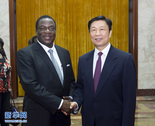 O vice-presidente chinês, Li Yuanchao, encontrou-se com seu homólogo do Zimbábue, Emmerson Mnangagwa, nesta quarta-feira em Beijing.