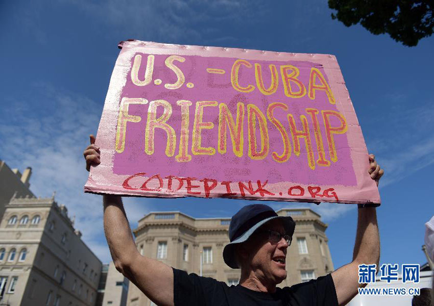BEIJING, 21 de Julho (Diário do Povo Online) – A embaixada cubana nos EUA realizou na segunda-feira (20) em Washington, a cerim?nia oficial de hasteamento da bandeira, um dos momentos marcantes do restabelecimento das rela??es diplomáticas entre os dois países.