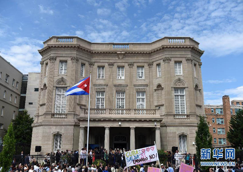 BEIJING, 21 de Julho (Diário do Povo Online) – A embaixada cubana nos EUA realizou na segunda-feira (20) em Washington, a cerim?nia oficial de hasteamento da bandeira, um dos momentos marcantes do restabelecimento das rela??es diplomáticas entre os dois países.