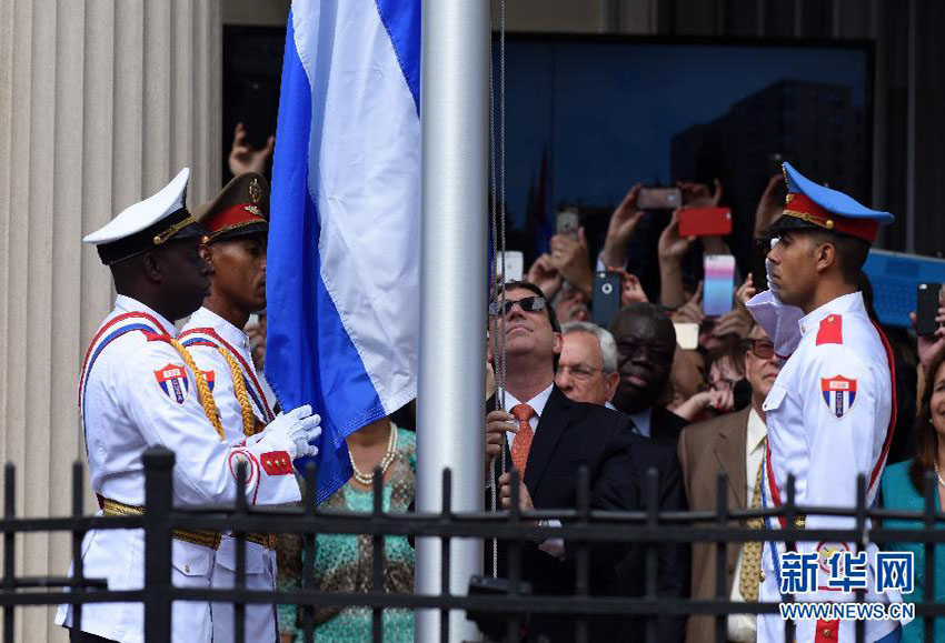 BEIJING, 21 de Julho (Diário do Povo Online) – A embaixada cubana nos EUA realizou na segunda-feira (20) em Washington, a cerim?nia oficial de hasteamento da bandeira, um dos momentos marcantes do restabelecimento das rela??es diplomáticas entre os dois países.