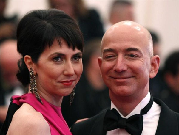 7o Jeff e MacKenzie Bezos, com ativo líquido total de 39,8 bilh?es de dólares. O casal criou o site de comércio eletr?nico “Amazon”, que tem um valor de 175 bilh?es de dólares.
