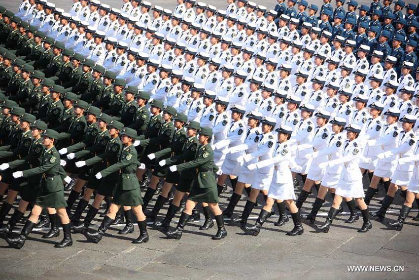 Foto tirada quando, em 2009, soldados do sexo feminino do EPL participavam na parada alusiva ao 60o aniversário da funda??o da República Popular da China, na Pra?a da Paz Celestial, em Beijing.