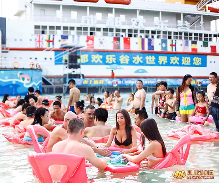CHENGDU, 3 de agosto (Diário do Povo Online) – Uma onda de calor que atingiu recentemente a cidade de Chengdu, sudoeste da China, levou a que milhares de pessoas colocassem, sábado da semana transacta, elevadas quantidades de mahjong na piscina do “Happy Valey” para se refrescarem durante a partida.