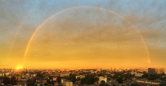 Segunda-feira n?o fugiu a lógica. Milhares de citadinos contemplaram o arco-íris e brilho do por do sol, o que raramente acontece.