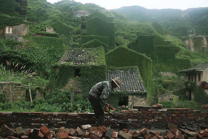 A aldeia Houtouwan se situa a nordeste da Ilha Shengshan. Nos anos 1980, os habitantes locais come?aram a sair da aldeia e se mudar para outros lugares da referida ilha. Gradualmente, a vegeta??o tomou conta das casas abandonadas, algumas das quais já foram totalmente cobertas pelas heras. A atual paisagem da aldeia parece “um conto de fadas”.