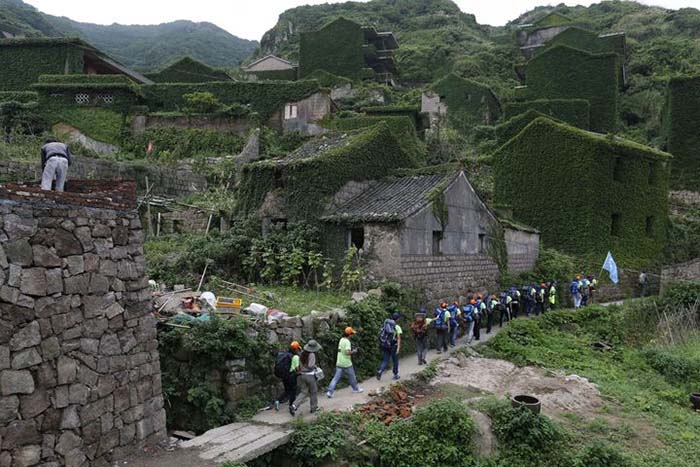 A aldeia Houtouwan se situa a nordeste da Ilha Shengshan. Nos anos 1980, os habitantes locais come?aram a sair da aldeia e se mudar para outros lugares da referida ilha. Gradualmente, a vegeta??o tomou conta das casas abandonadas, algumas das quais já foram totalmente cobertas pelas heras. A atual paisagem da aldeia parece “um conto de fadas”.