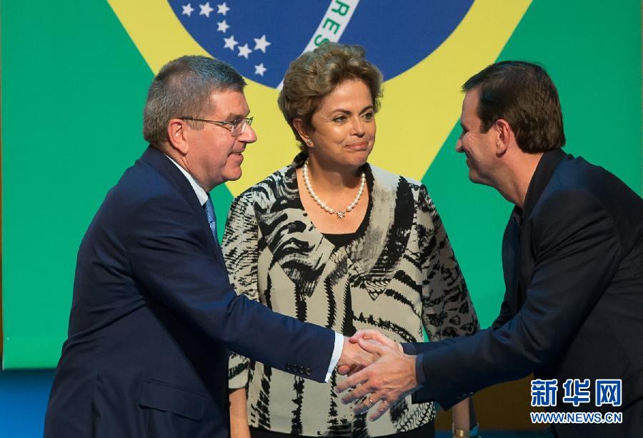A presidente do Brasil, Dilma Rousseff, o prefeito do Rio de Janeiro, Eduardo Paes, o presidente do Comitê Organizador dos Jogos Olímpicos do Rio de Janeiro, Carlos Nuzman e o ministro dos Esportes, George Hilton, participaram da cerim?nia de celebra??o, que aconteceu na Cidade das Artes, a cerca de cinco quil?metros do Parque Olímpico.