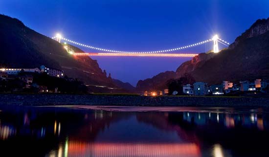 CHANGSHA, 6 de agosto (Diário do Povo Online) - Aizhai é o nome da ponte suspensa mais alta e mais longa do mundo construída entre dois túneis. A mesma foi erguida ao longo da autoestrada Baotu - Maiming, perto de Jishou, na Província de Hunan, centro da China.