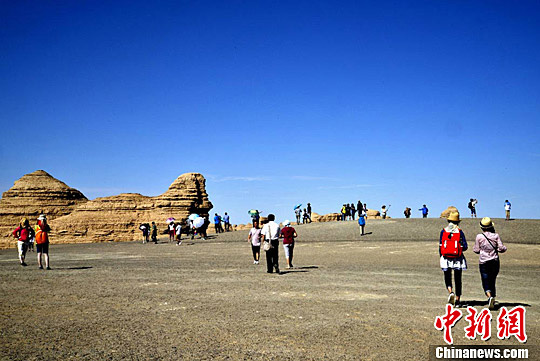 Segundo dados estatísticos, o número de turistas que visitaram a zona turística do Monte Mingsha atingiu, ter?a-feira (4), mais de 16 mil almas, aumentando 118,9% em compara??o com o mesmo período do ano passado, tendo no dia seguinte, quarta-feira (5), o número subido para o histórico recorde de 18 mil visitantes.