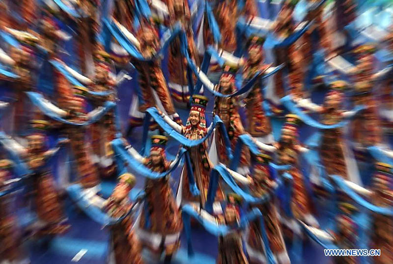 Atletas das cinquenta e seis étnicas da China apareceram no estúdio em Erdos, com vestuários de caraterísticas étnicas, testemunhando a inaugura??o.