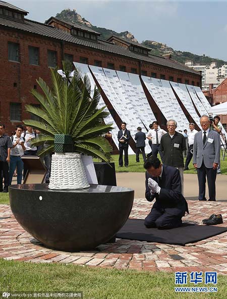 SEUL, 13 de agosto (Diário do Povo Online) – O ex-primeiro-ministro japonês, Yukio Hatoyama, ajoelhou-se, quarta-feira (12), na lapide dos mártires da Coreia do Sul, localizada no Museu da Pris?o de Seodaemun, em Seul, no ambito da sua visita que efetua àquele país, em gesto de desculpas pelos crimes cruéis cometidos pelo Jap?o durante o período colonial.