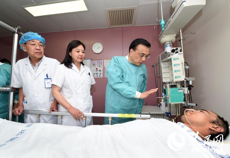 Ele também visitou os bombeiros, policiais, trabalhadores e residente internados no Hospital Teda de Tianjin e encorajou aos médicos e enfermeiras para continuar salvando vidas com espírito humanitário e habilidades profissionais excelentes, a fim de minimizar o número de mortos e deficientes.