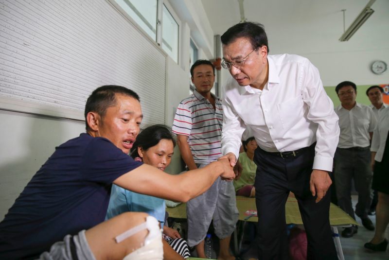 Ele também visitou os bombeiros, policiais, trabalhadores e residente internados no Hospital Teda de Tianjin e encorajou aos médicos e enfermeiras para continuar salvando vidas com espírito humanitário e habilidades profissionais excelentes, a fim de minimizar o número de mortos e deficientes.