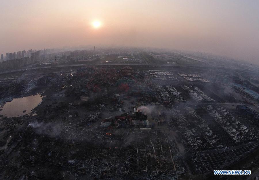 Até às 9h20 de hoje (17), ainda há fogo por volta do ponto central das explos?es do porto de Tianjin, que ocorreram no dia 12 deste mês. Agora, ocorreram novas explos?es no local.